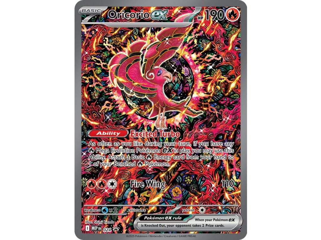 1x foilová promo karta Oricorio ex MEP 024 od geniálneho jpn. ilustrátora Shinjiho Kandu