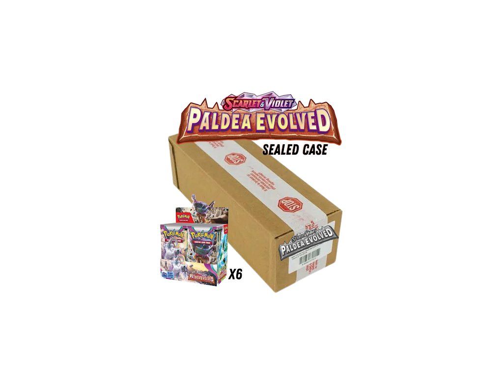 Pokémon TCG: Scarlet & Violet 2.0 - Paldea Evolved 6 Booster Box case obsahuje 6x sealed booster box.