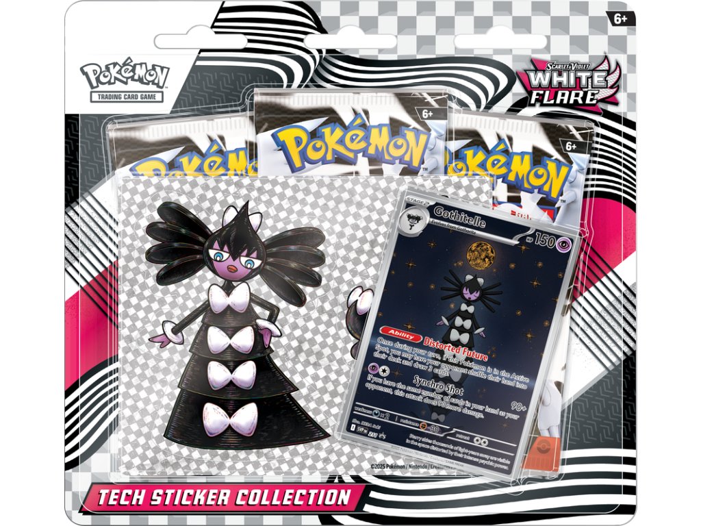 Pokémon TCG: Scarlet & Violet 10.5 - White Flare Tech Sticker Collection Gothitelle obsahuje: 3x booster, 1x promo karta - Gothitelle, nálepka a iné.